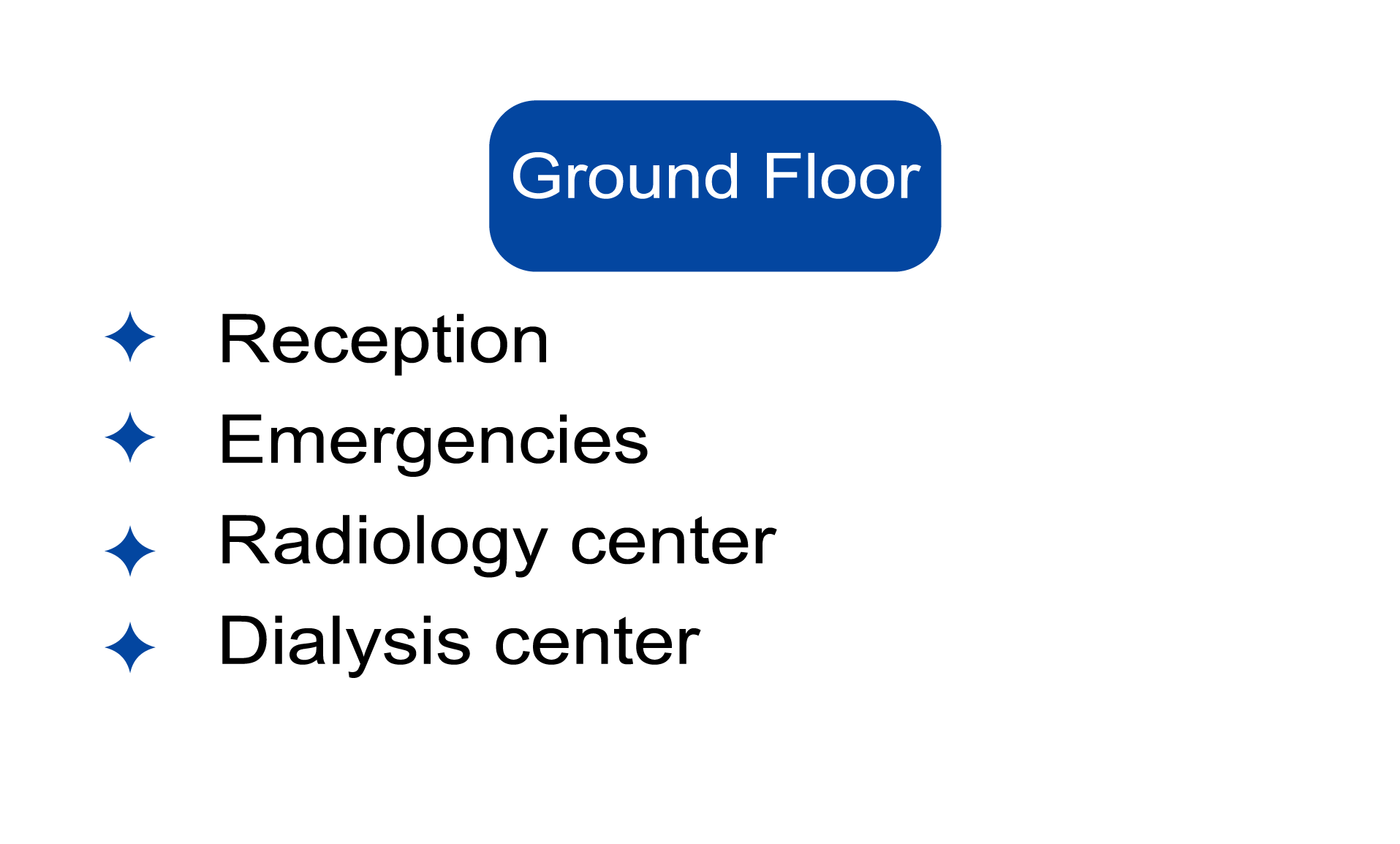 Each floor of El Bassatine Polyclinic is dedicated to a key area of your care. From reception to emergency, operating rooms, intensive care, and specialized services, everything is designed to provide fast, coordinated, and high-quality care.
