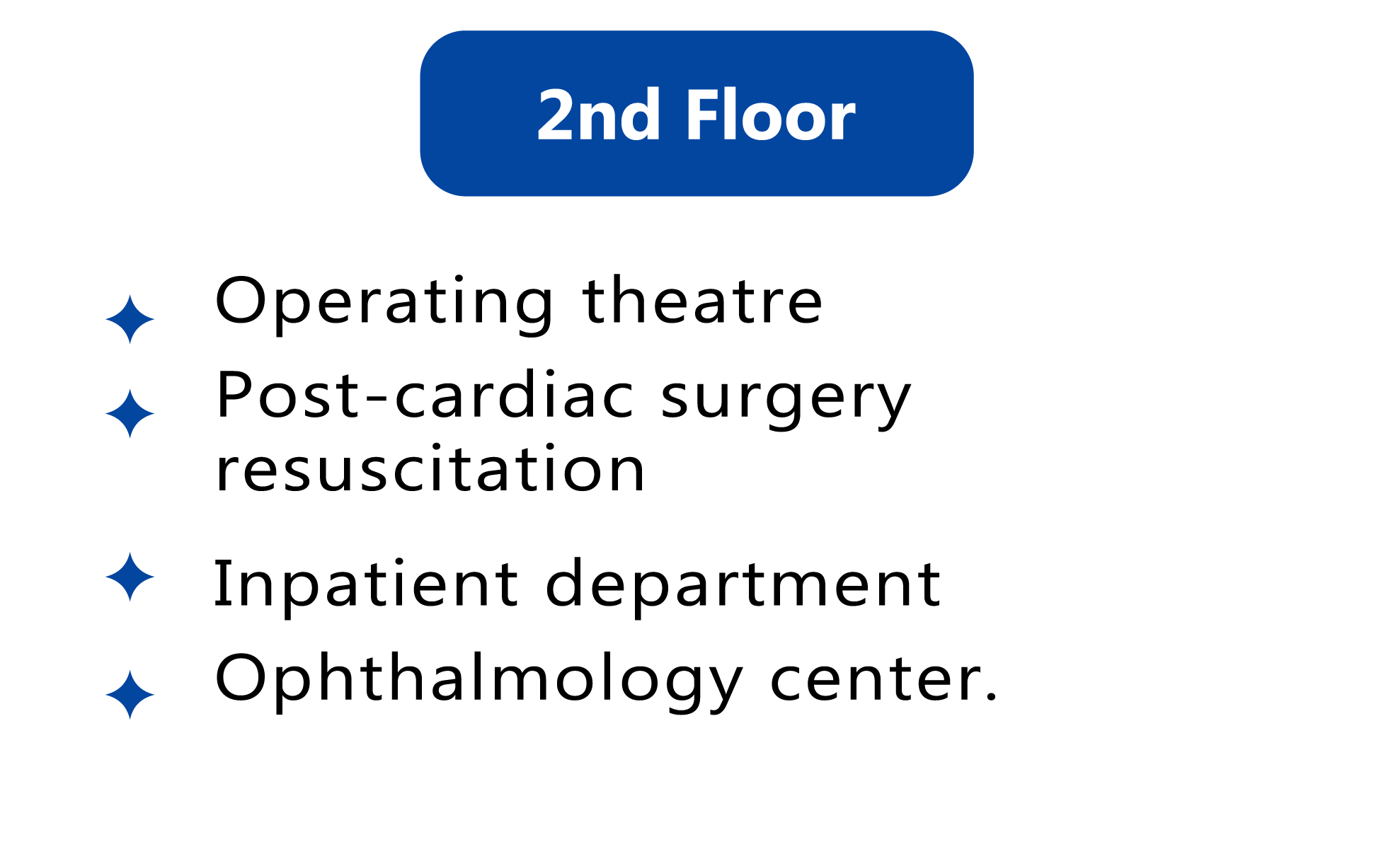 Le deuxième étage regroupe plusieurs pôles essentiels aux soins médicaux. Il comprend :